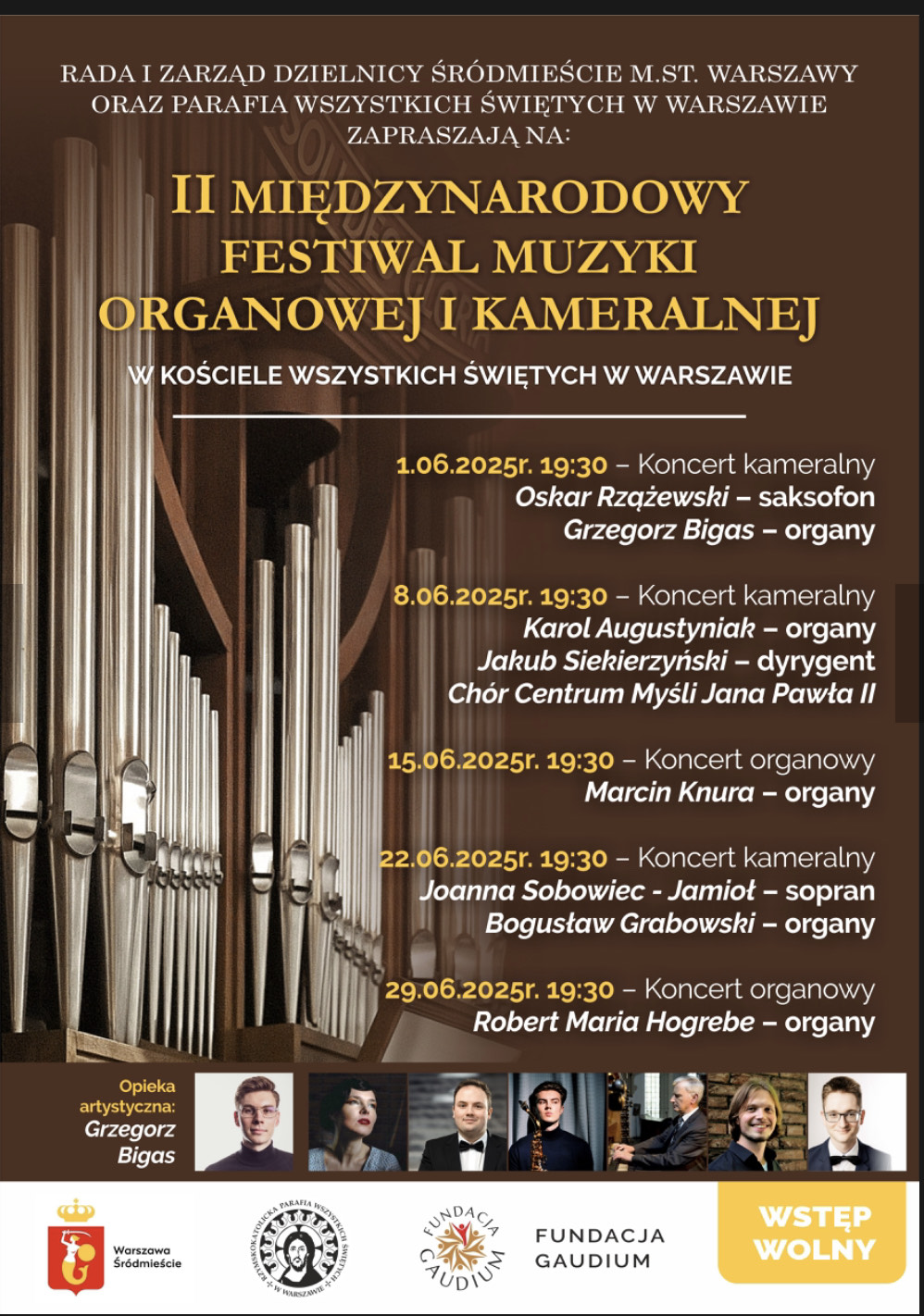 Kościół Wszystkich Świętych w Warszawie Plac Grzybowski 3/5, Warszawa, mazowieckie, PolandRada i Zarząd Dzielnicy Śródmieście M.st. Warszawy oraz parafia Wszystkich Świętych w Warszawie zapraszają na II Międzynarodowy Festiwal Muzyki Organowej i Kameralnej w Kościele Wszystkich Świętych w Warszawie w dniach 1-29 czerwca 2025 roku. TERMINARZ: 1.06.2025r – godz. 19:30 – Koncert kameralny Oskar Rzążewski – saksofon Grzegorz Bigas – organy 8.06.2025r – godz. 19:30 –… Czytaj dalej »II Międzynarodowy Festiwal Muzyki Organowej i Kameralnej w Kościele Wszystkich Świętych w Warszawie