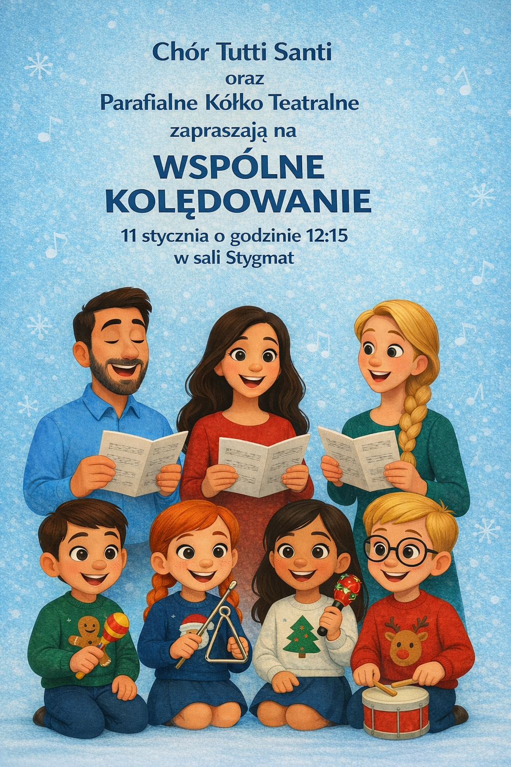 Scena Stygmat - sala widowiskowa w podziemiach kościoła Wszystkich Świętych Plac Grzybowski 3/5, Warszawa, PolandChór Tutti Santi oraz Parafialne Kółko Teatralne zapraszają na wspólne kolędowanie! TERMIN: 11 stycznia 2026, godz. 12:15 MIEJSCE: Scena Stygmat - sala widowiskowa w podziemiach kościoła Wszystkich Świętych w Warszawie, Plac Grzybowski 3/5