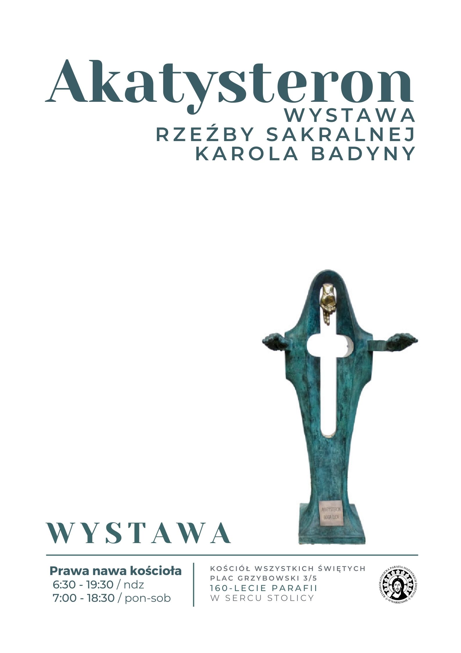 Kościół Wszystkich Świętych w Warszawie Plac Grzybowski 3/5, Warszawa, mazowieckie, PolandZapraszamy na wystawę rzeźby sakralnej pt. AKATYSTERONY autorstwa prof. Karola Badyny. Artysta wykonywał w naszym kościele anioły na wieży oraz rzeźby w ołtarzach transeptu: św. Andrzeja, św. Róży, św. s. Faustyny i bł. Michała Sopoćki. Wystawa dostępna do 22 kwietnia 2026: 6:30 - 19:30 / ndz 7:00 - 18:30 / pon-sob Prawa (zachodnia) nawa kościoła… Czytaj dalej »[wystawa] Akatysteron – Karol Badyna | wystawa rzeźby sakralnej